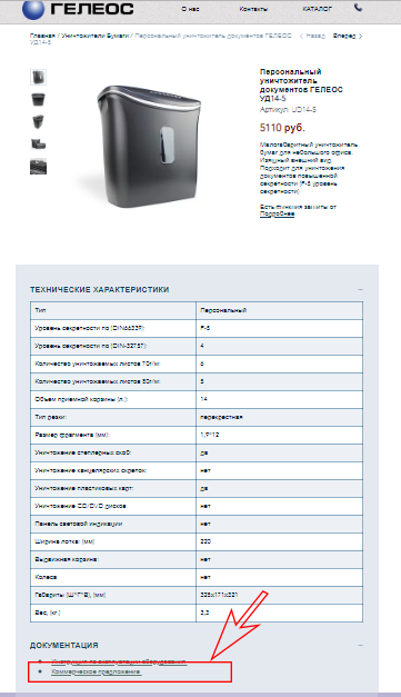 С более подробными характеристиками шредера можно ознакомиться в каталоге.